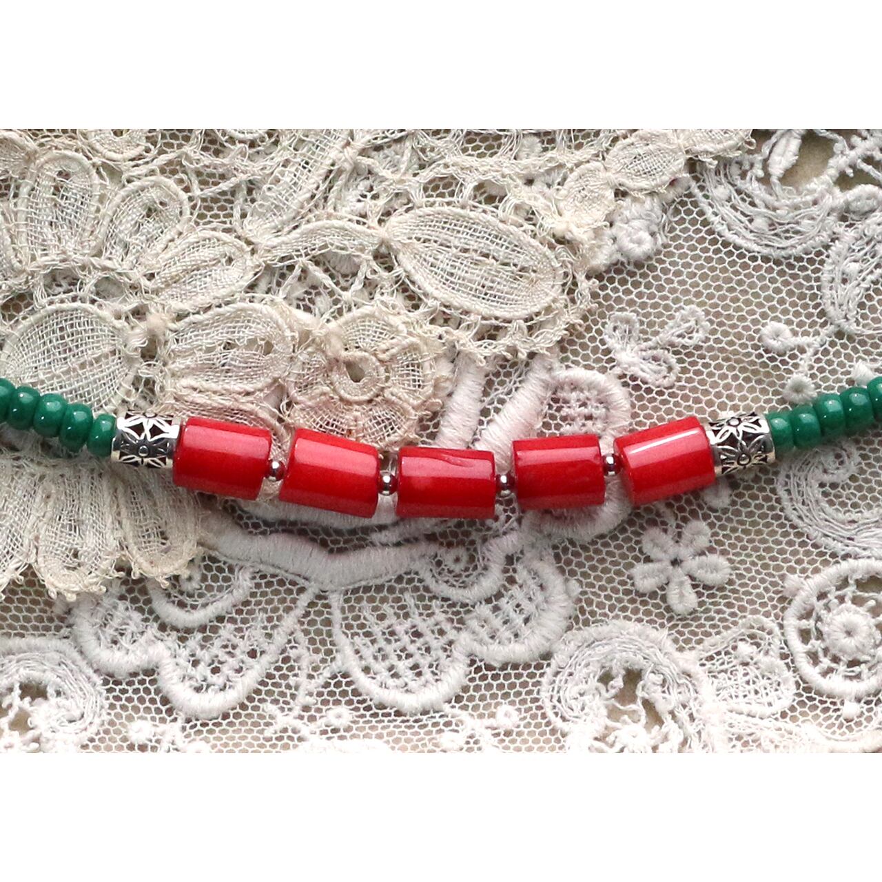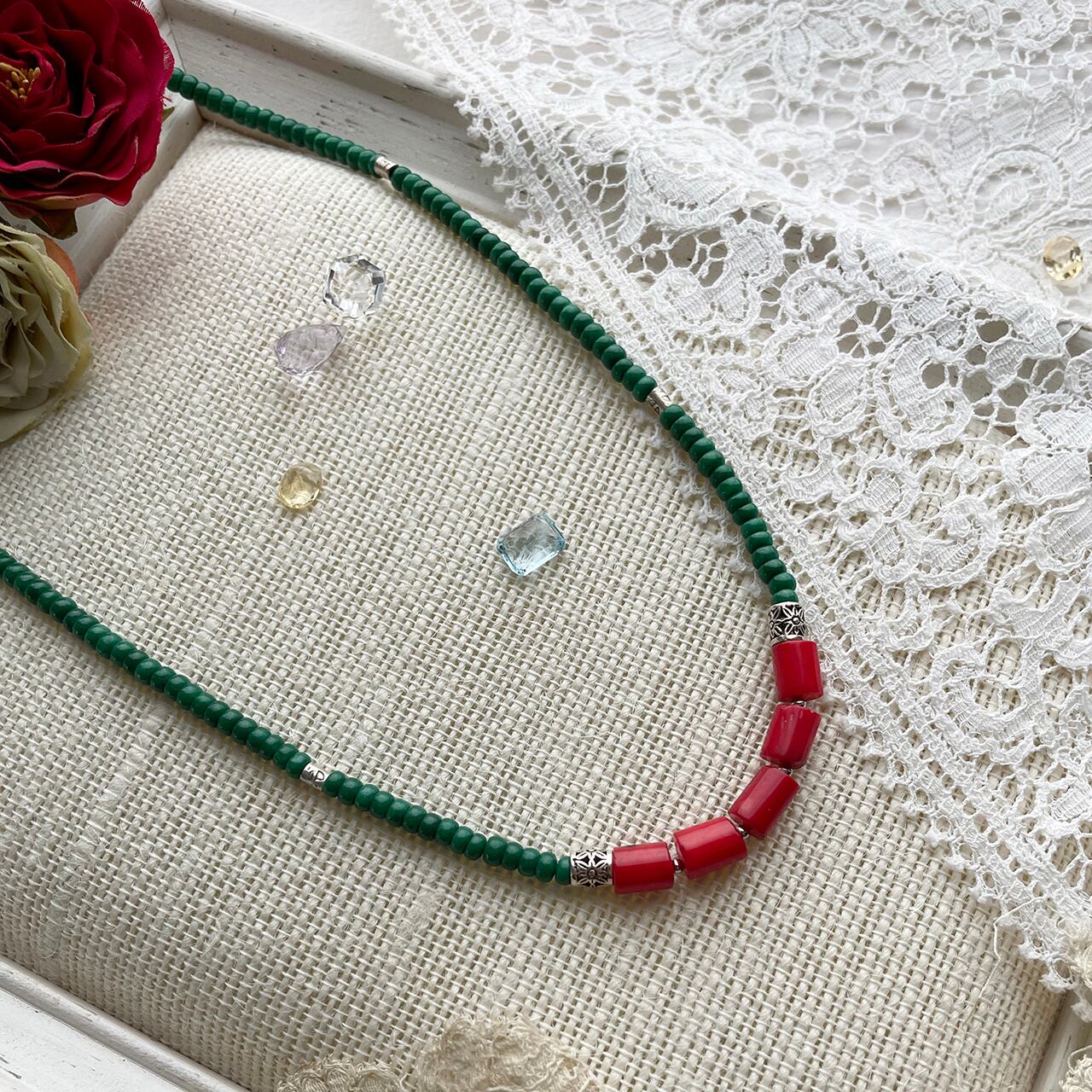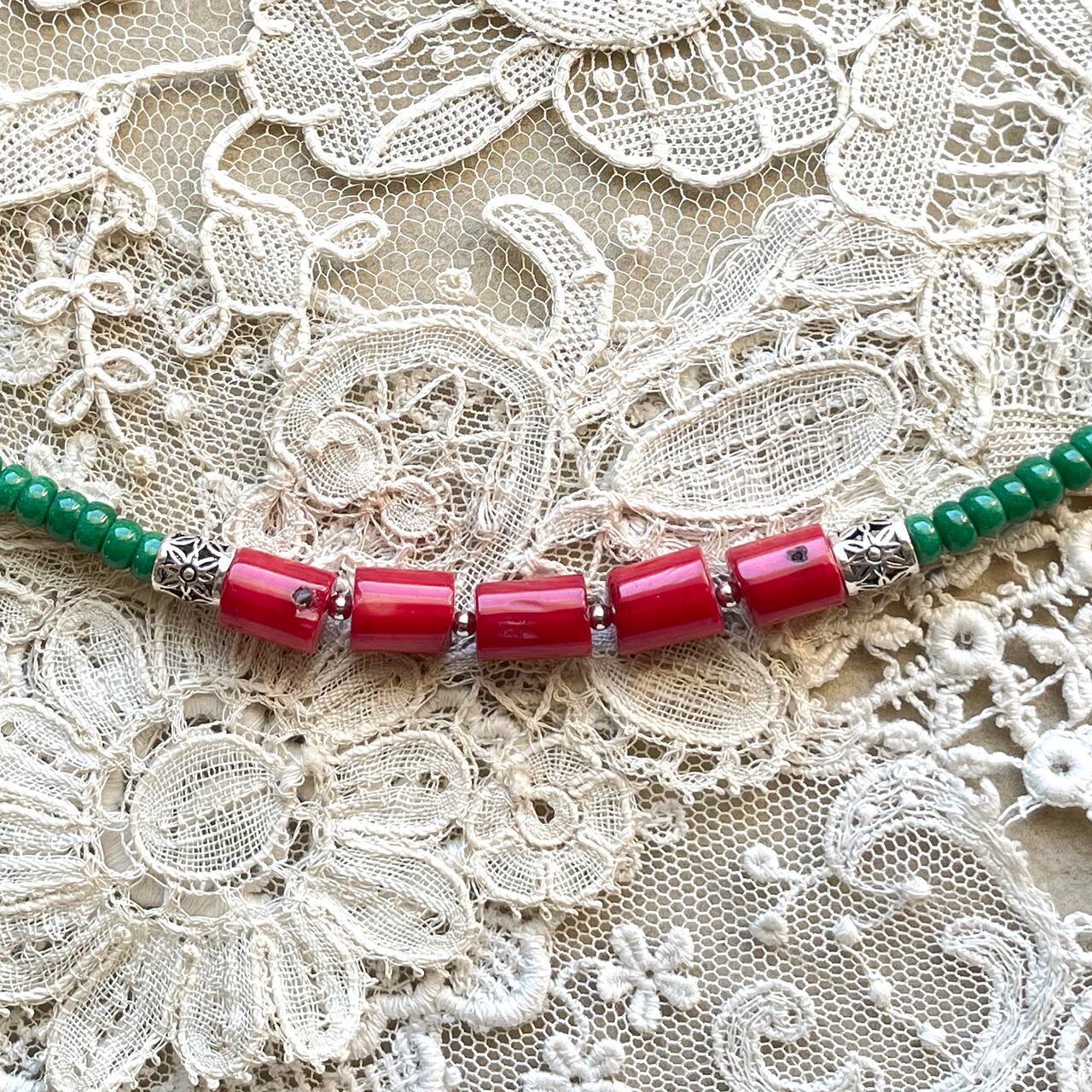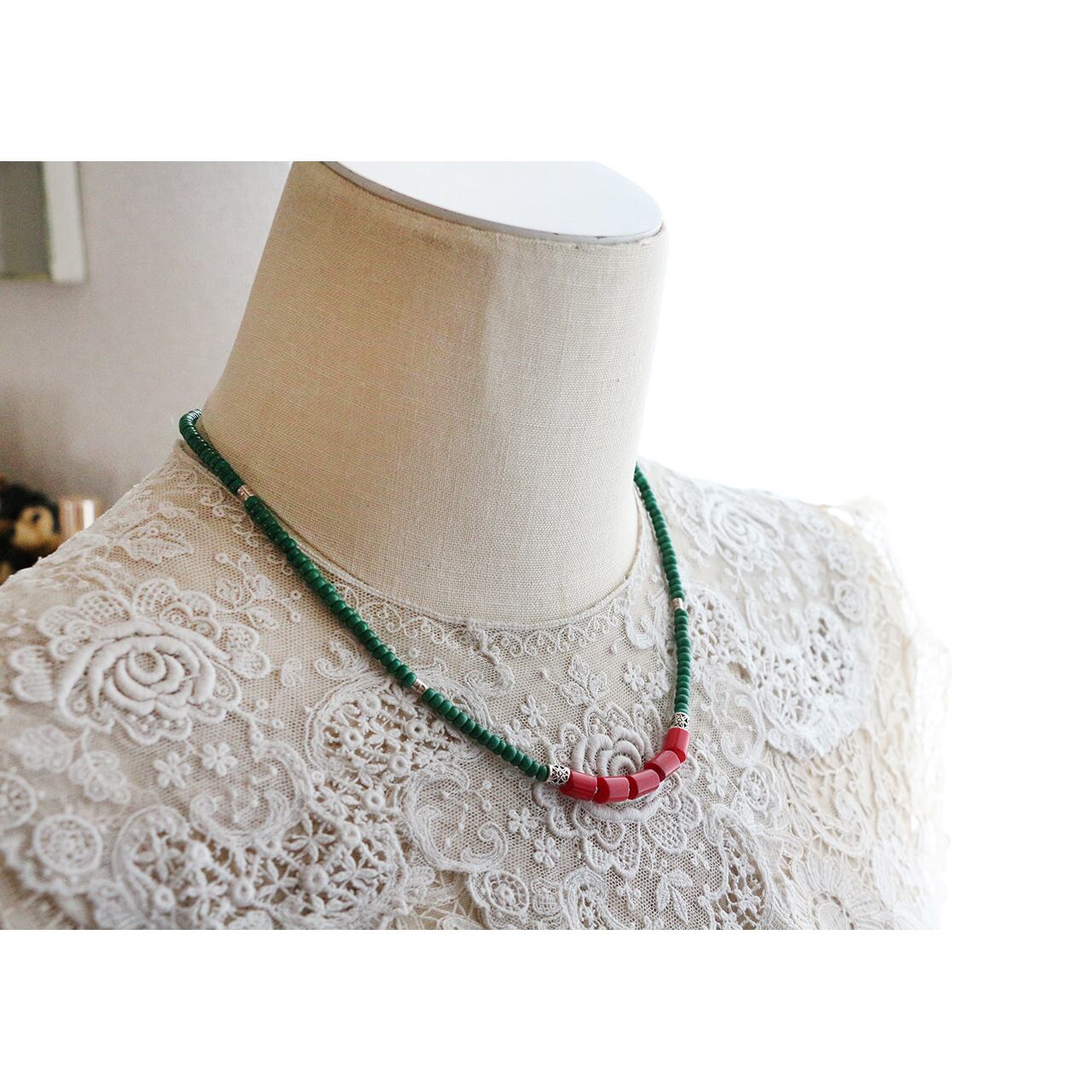 赤が鮮やか・マウンテンジェイドとコーラルのネックレス
