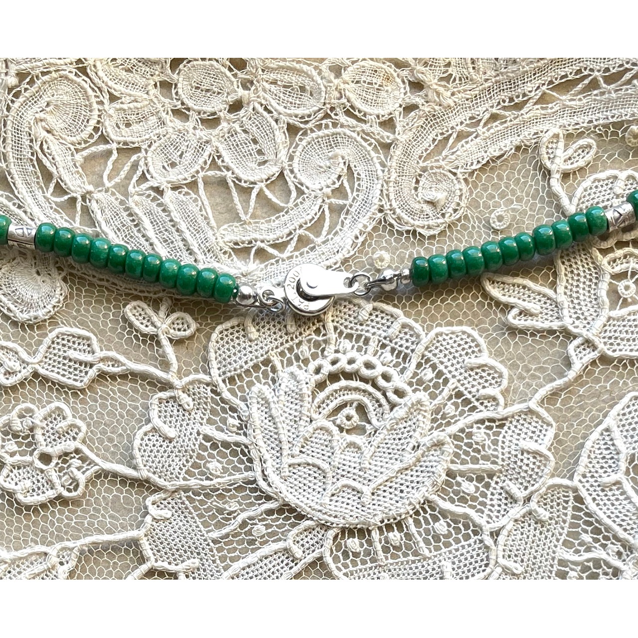 使用した天然石はマウンテンジェイド(翡翠)・ビーズは本珊瑚・シルバーです。