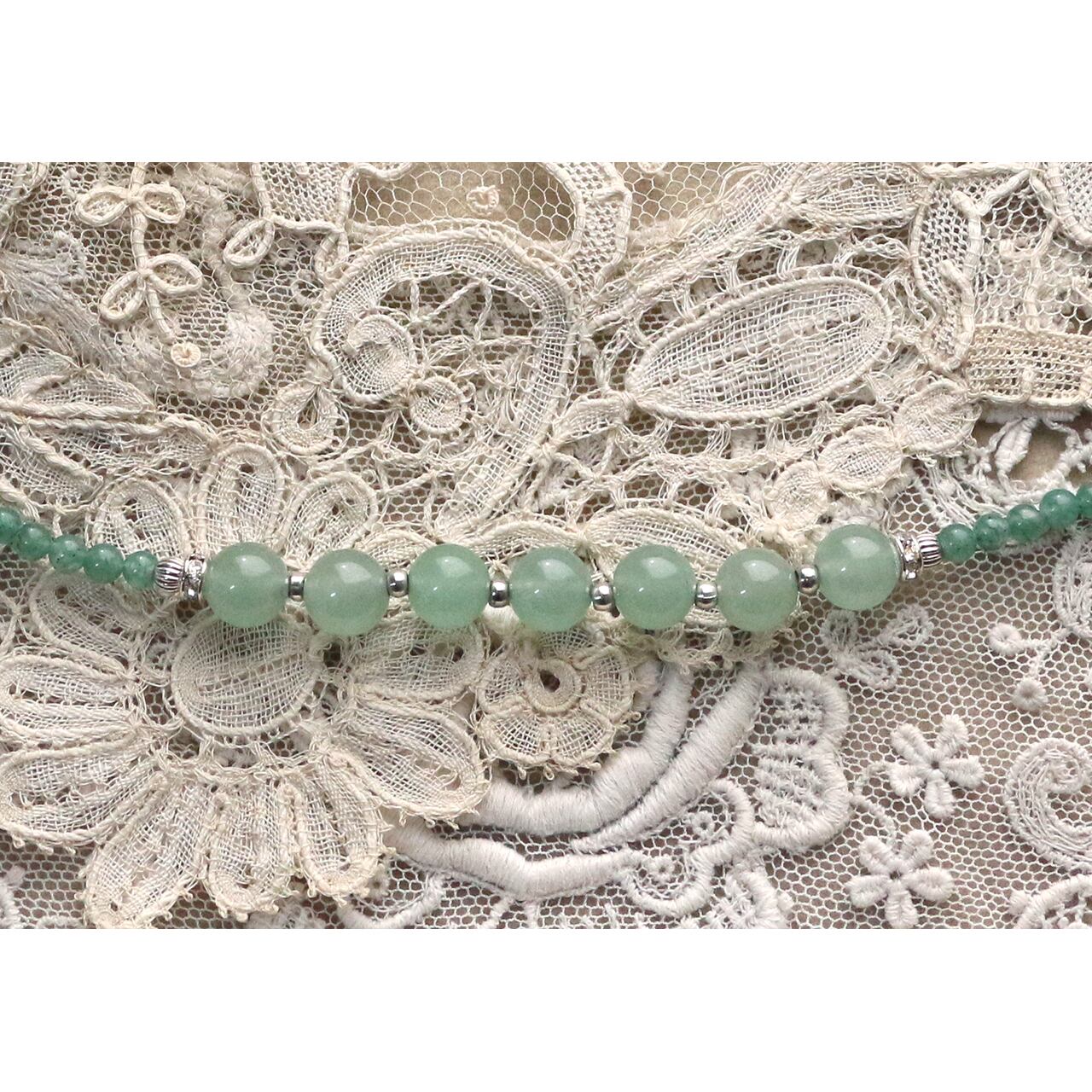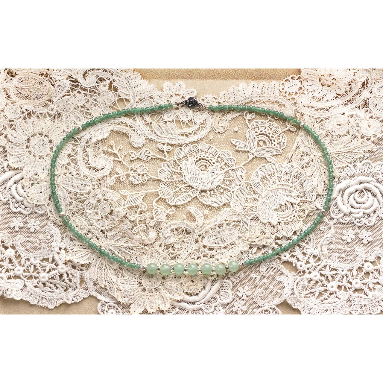 アベンチェリンとシルバービーズのみのスッキリとしたネックレス。