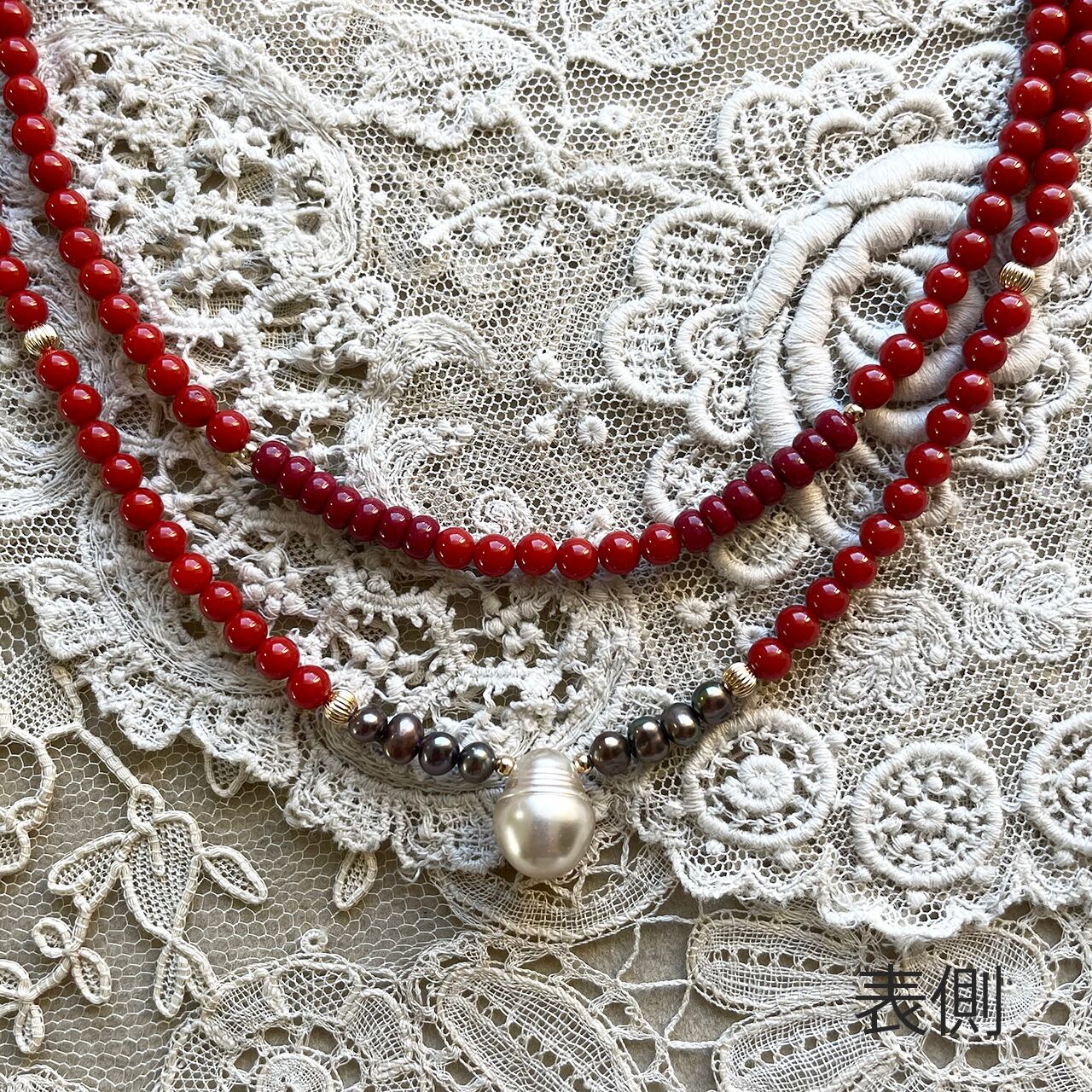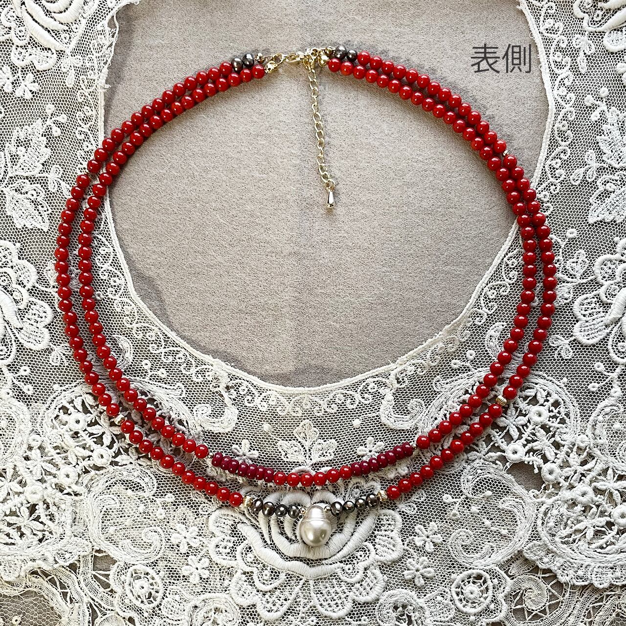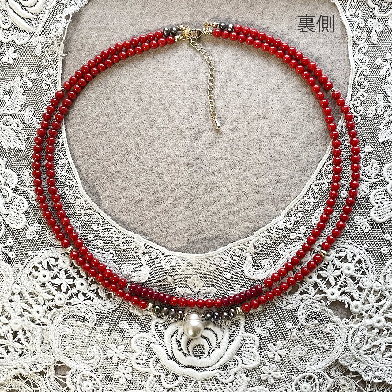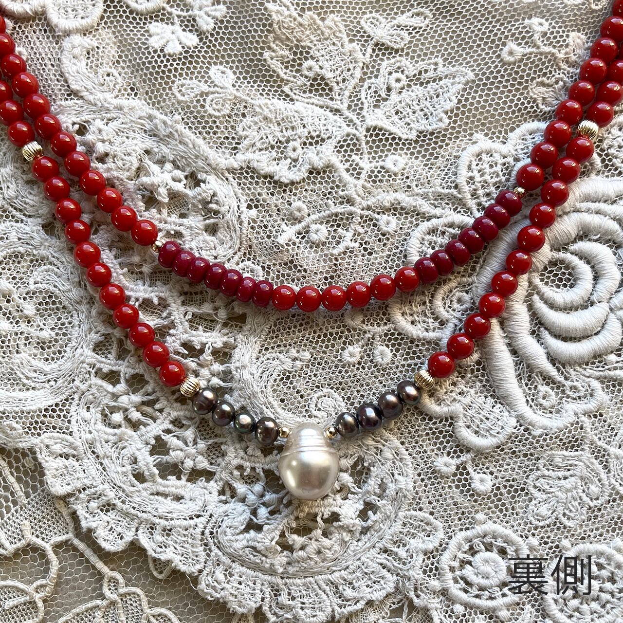 贅沢な本珊瑚2連のネックレス。