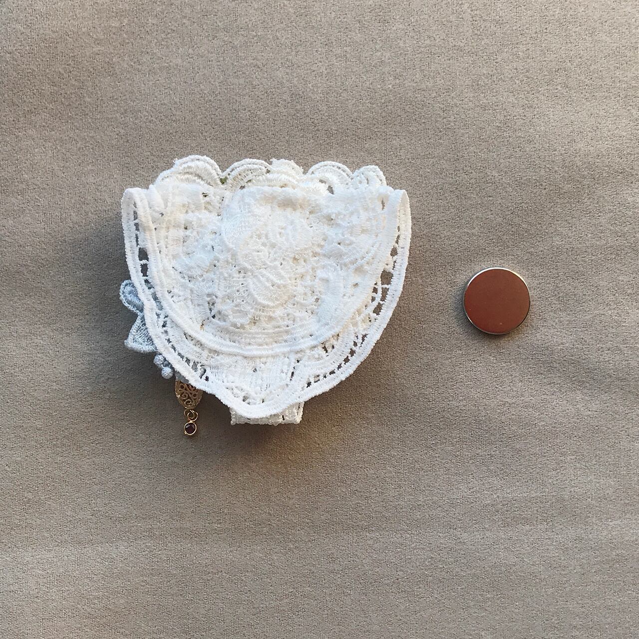大きさは横約7㎝、縦約7.5㎝(レース部分は縦約6.5㎝)。