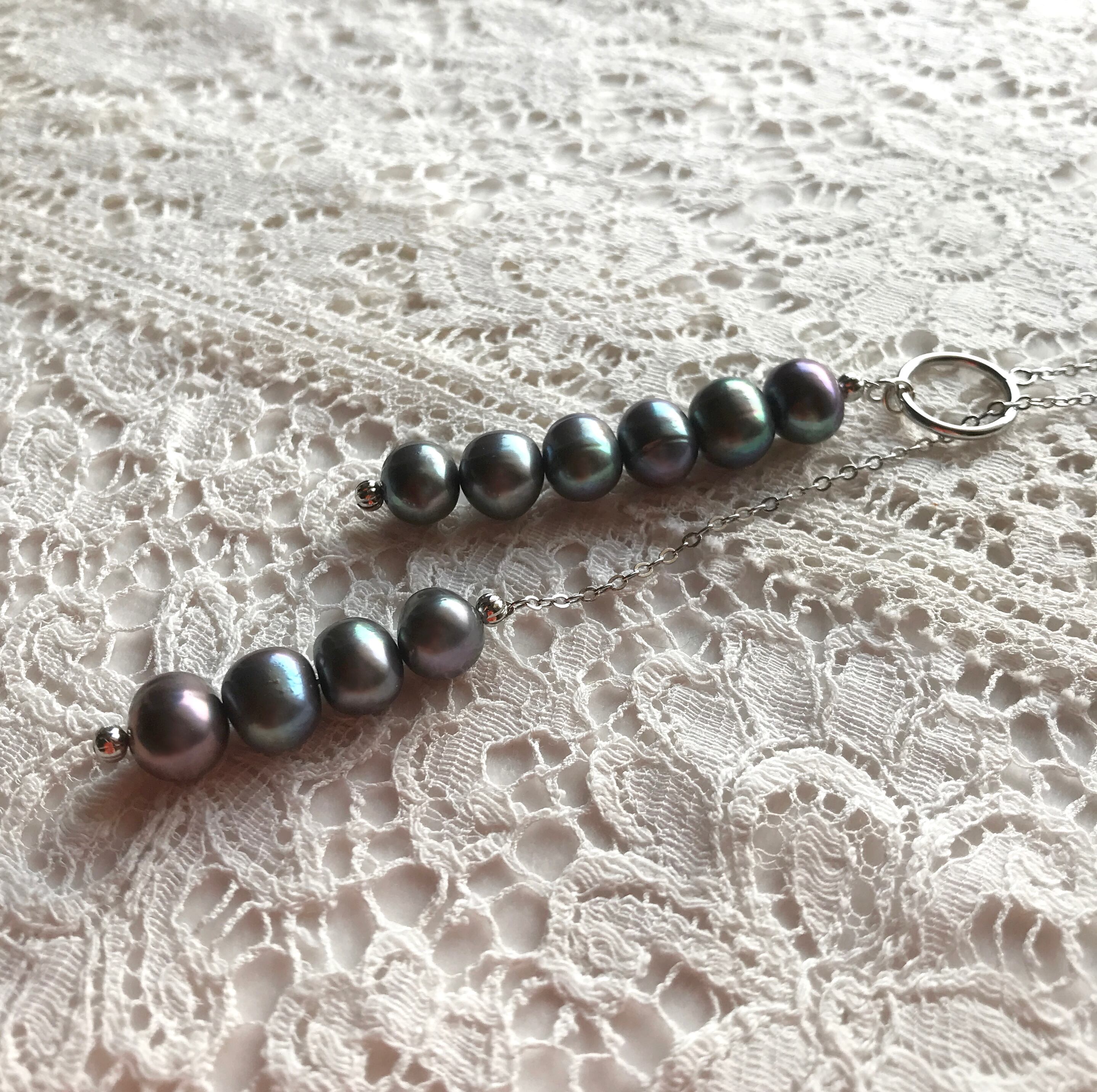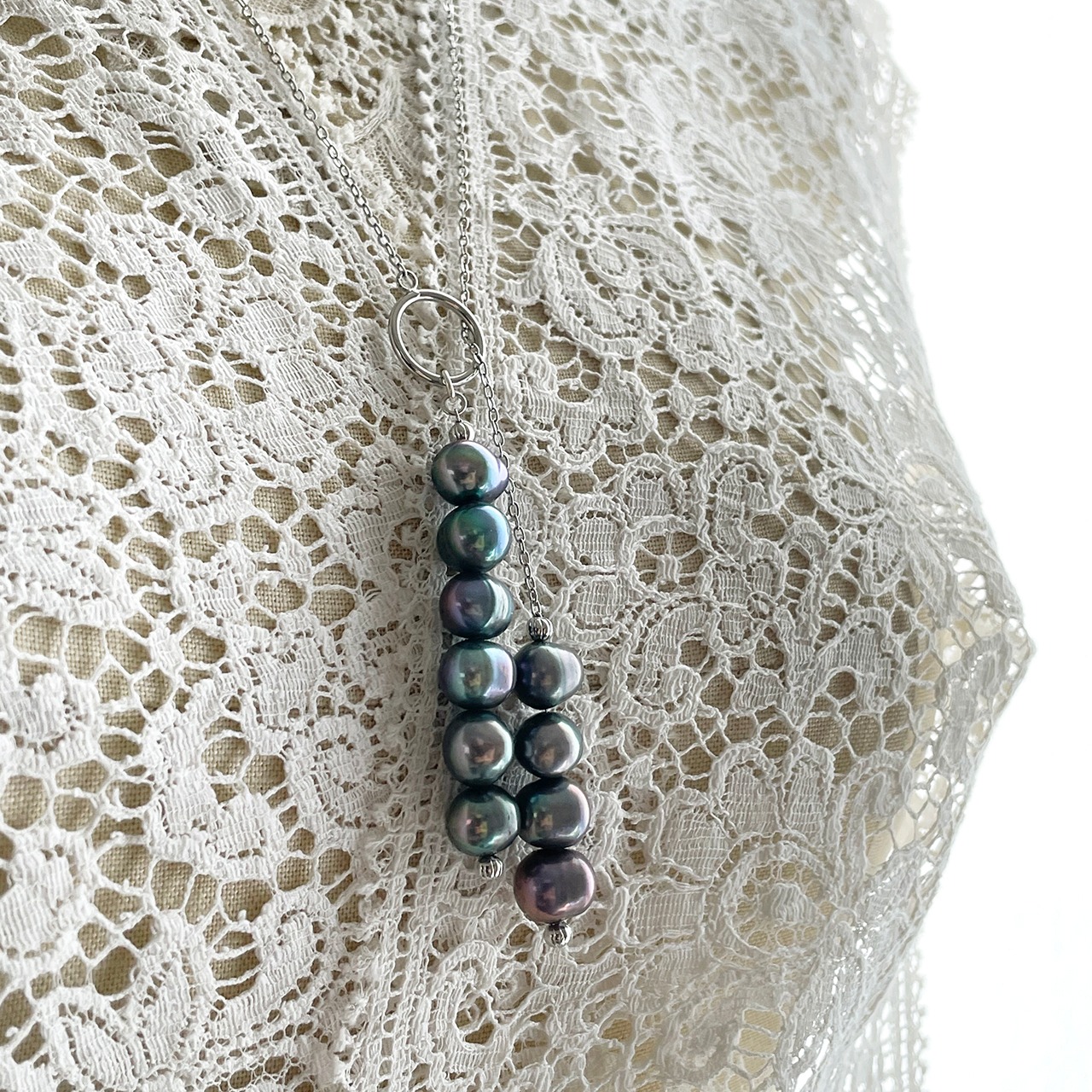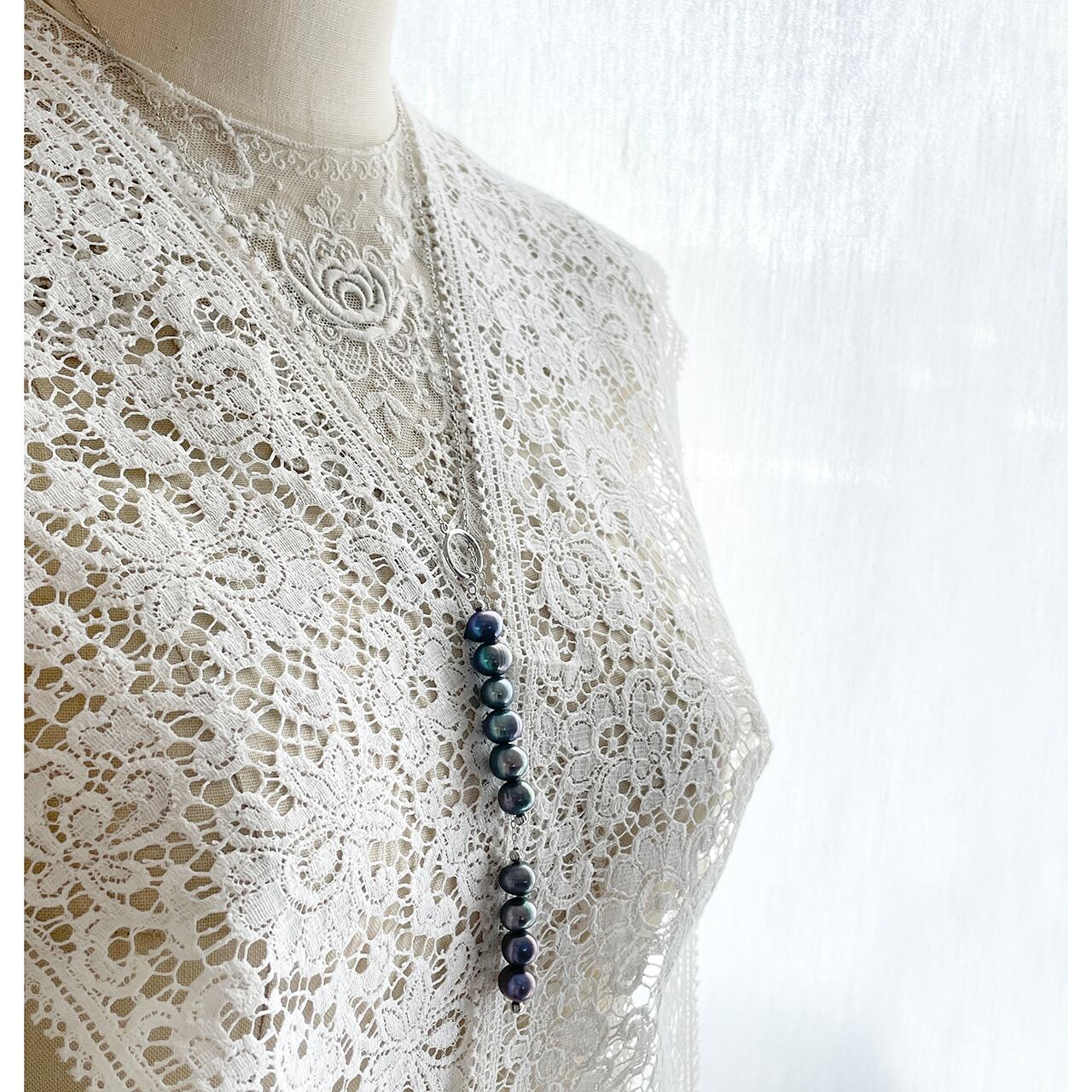 チェーン付きのブラックパールをシルバーリングに通して使っていただくタイプのネックレス。