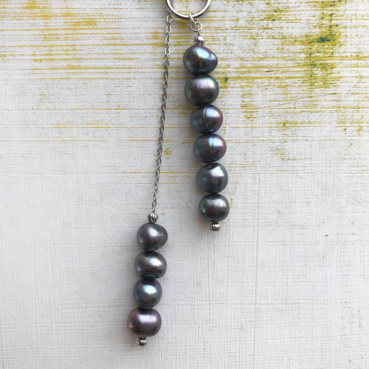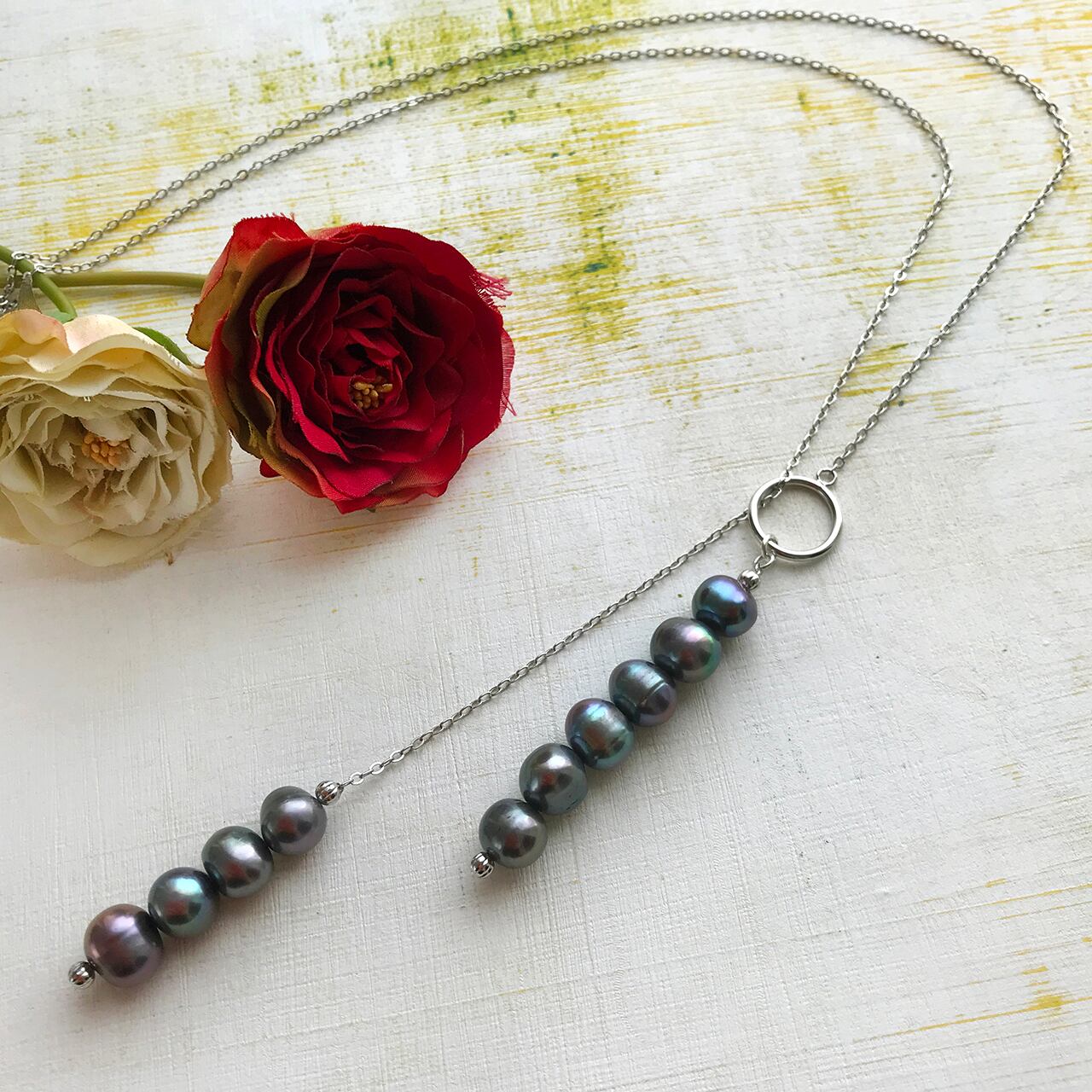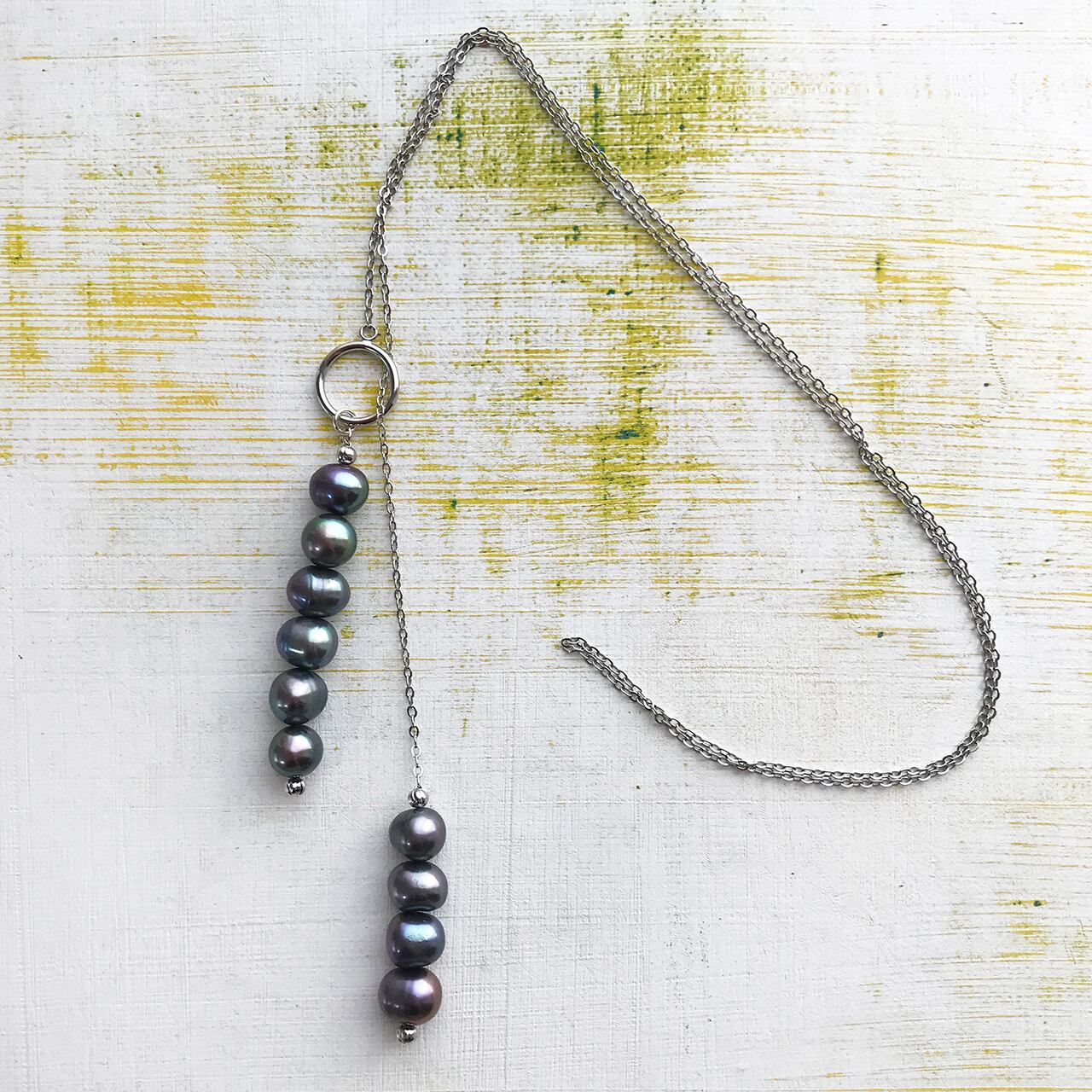 チェーン付きのブラックパールをシルバーリングに通して使っていただくタイプのネックレス。