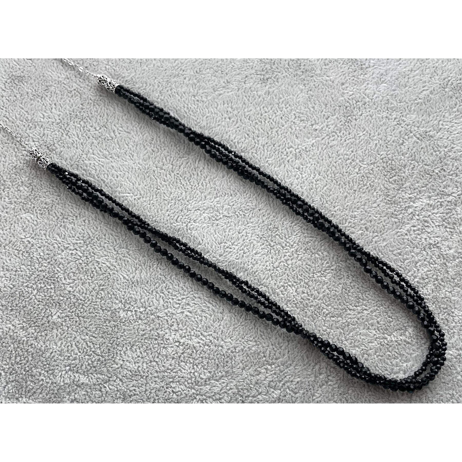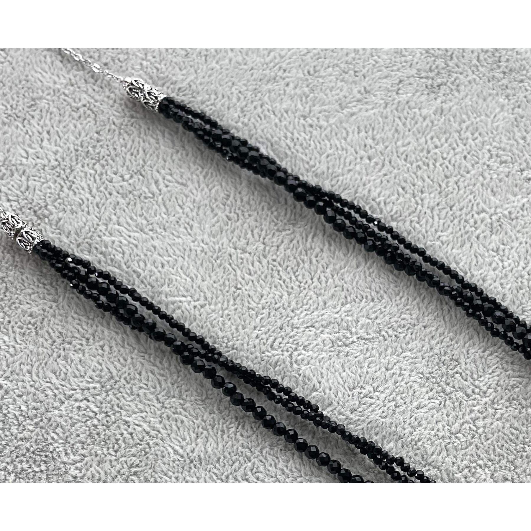 面取りしたブラックオニキス3本とシルバービーズを使用した