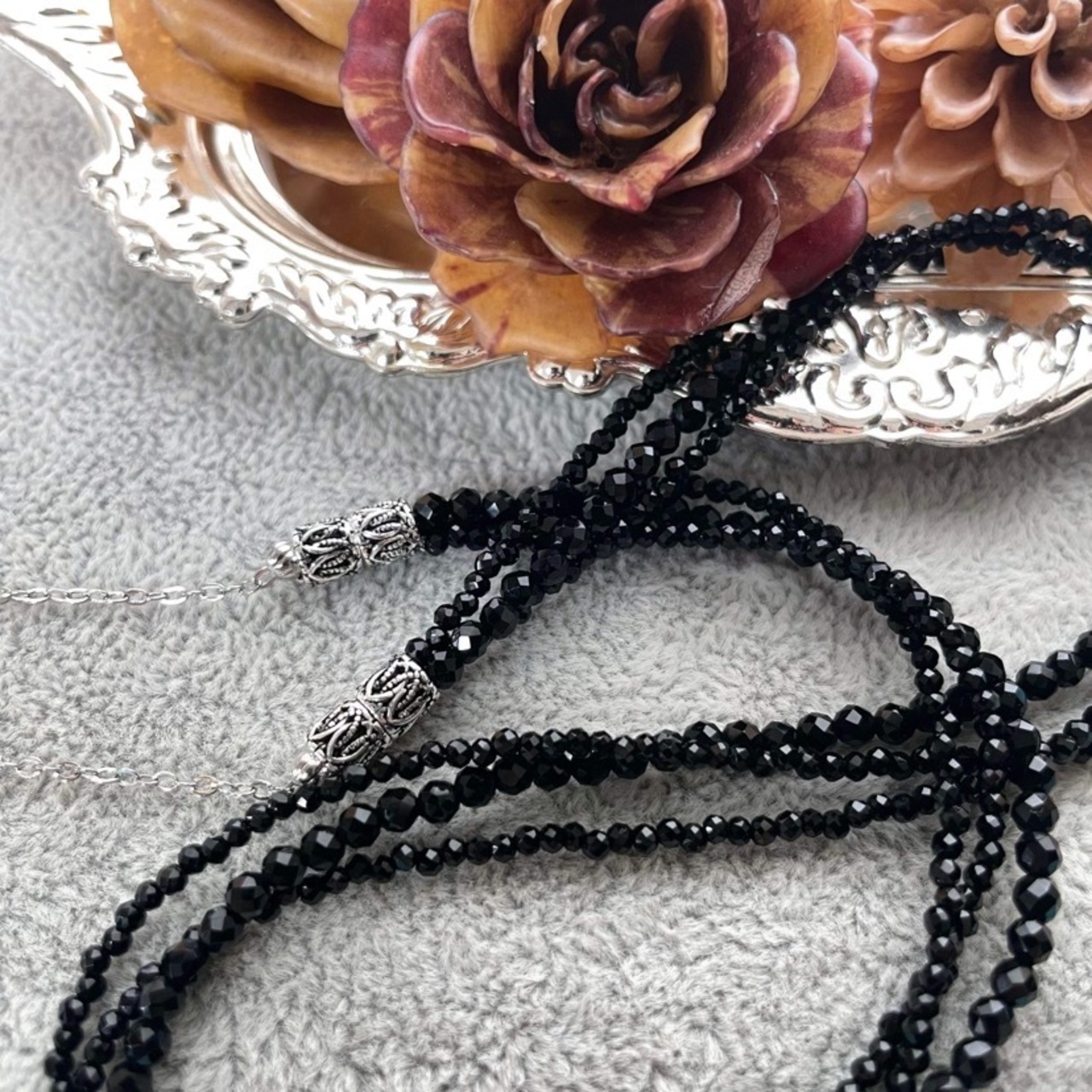 使用したビーズはオニキス、シルバーです。